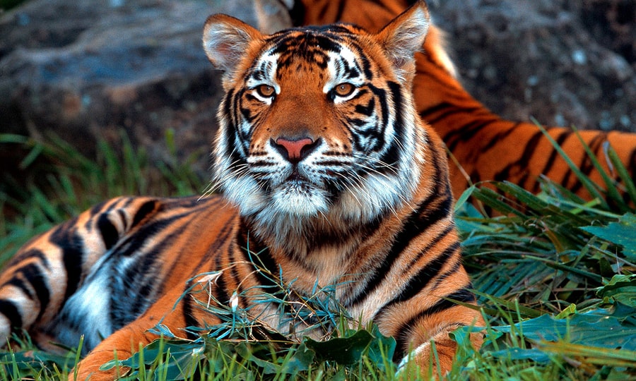 Sumatran tigers originate from the Indonesian island of Sumatra with as few as 400 extimated to remain in the wild, predominantly in national parks on the island. They are the smallest of all tigers, weighing about half as much as Bengal tigers.