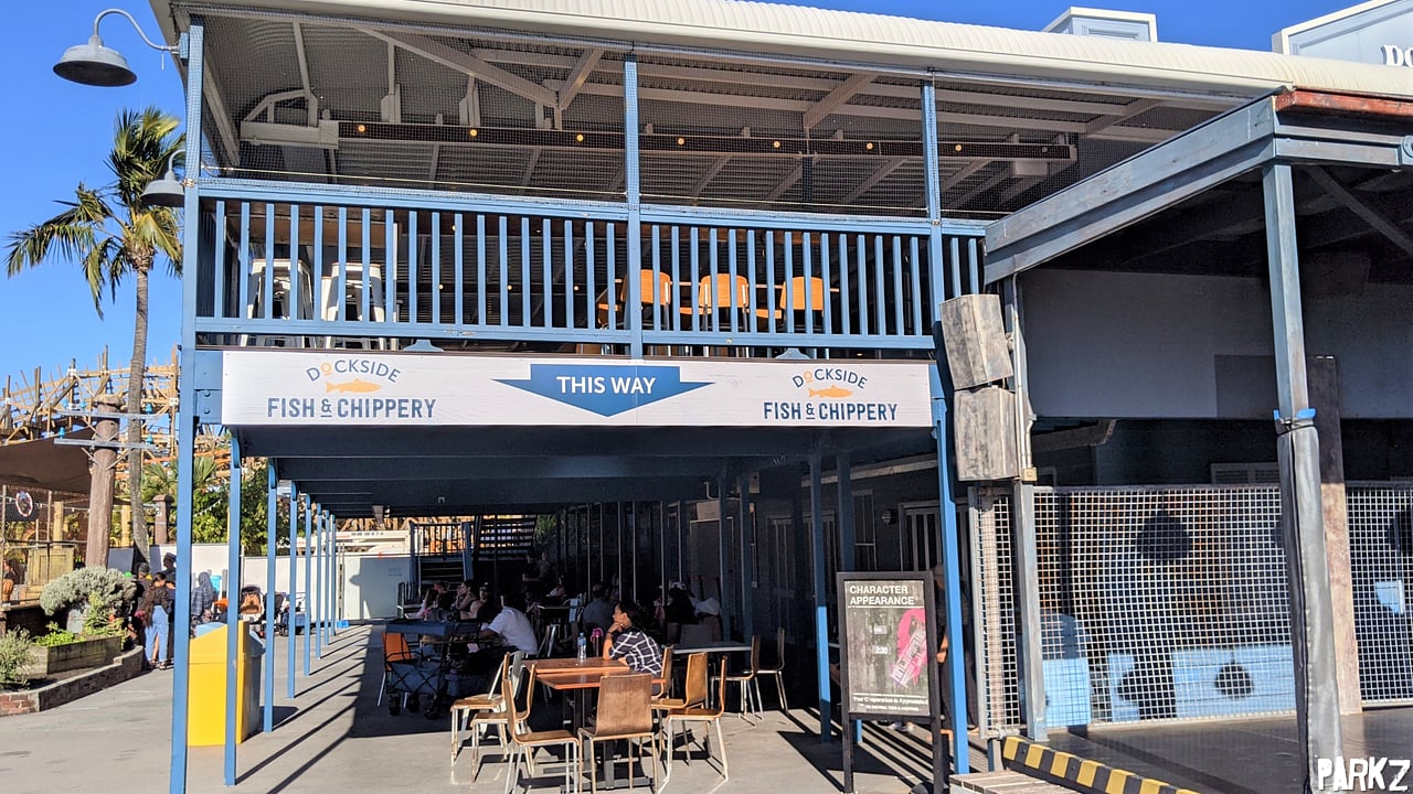 What has previously bee a small arcade and custom baseball cap shop is now a hole-in-the-wall fish and chippery. It works well having parents able to sit just that little bit closer to their kids on the Nickelodeon rides.