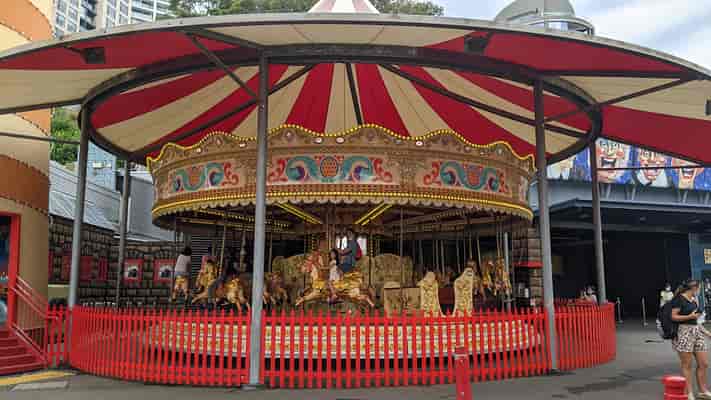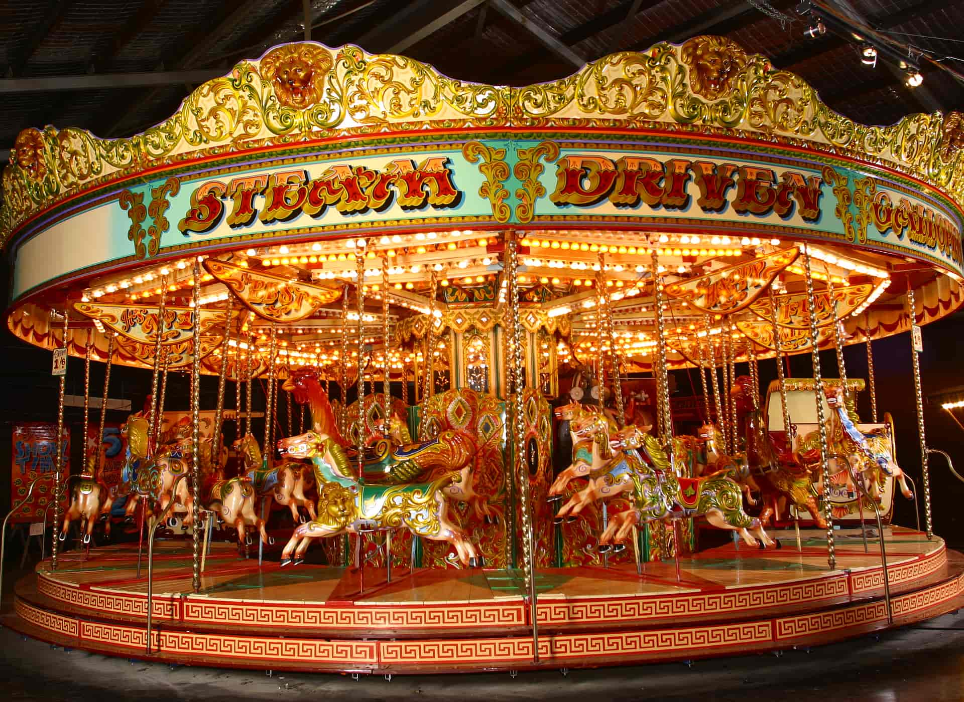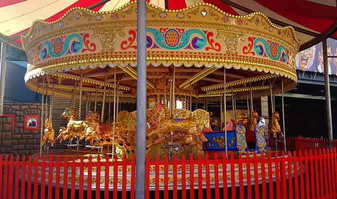 First constructed in the late nineteenth century, the Racing Cockerels Carousel was leased to Luna Park by a private collector from 2004 to November 2006, who then sold it to the park in early 2007. The carousel retains its original steam engine -- although electricity is used to power the ride-- and is accompanied by an 89-key, 1904 Gavioli organ.
