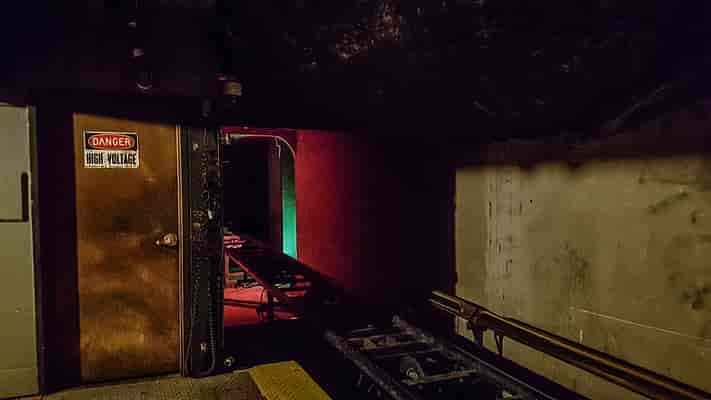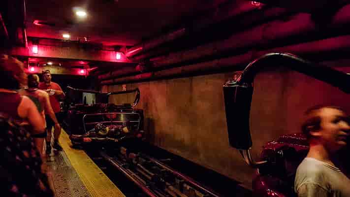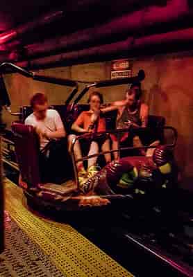 Indoor spinning coaster themed around a factory over run by giant rats.