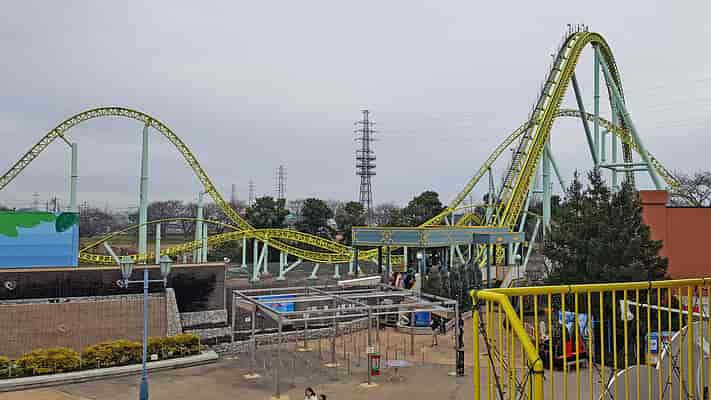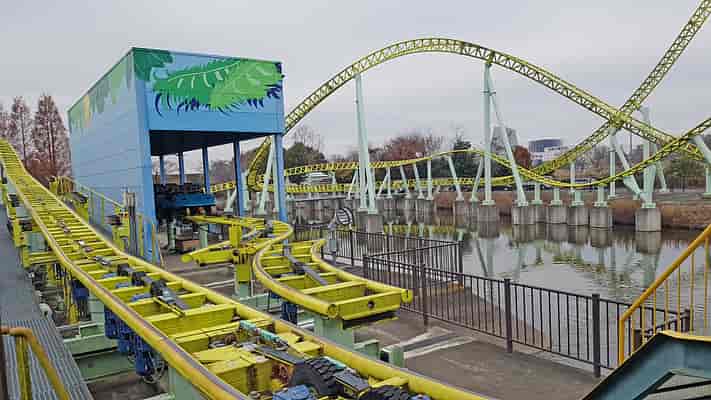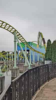 "Kingfisher" is a Mega Lite coaster, effectively a smaller version of a hypercoaster, with a layout focused on airtime hills and low turns.