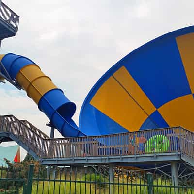 A family raft slide featuring enclosed turns and open air drops.