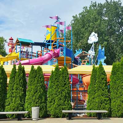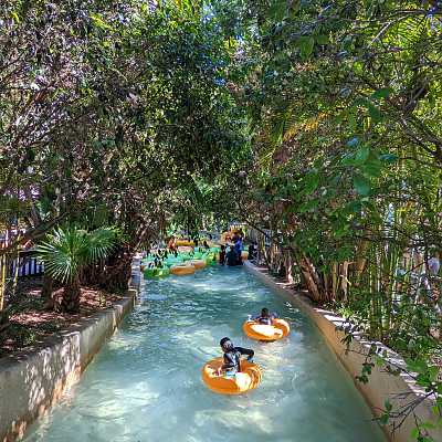 An "action" river; essentially a more energetic version of a lazy river, with waterfalls and a wave generating section.