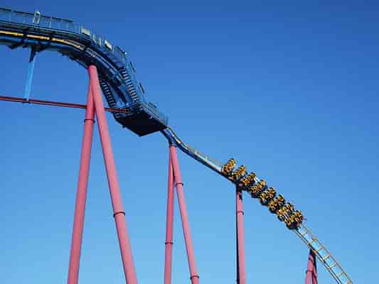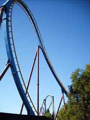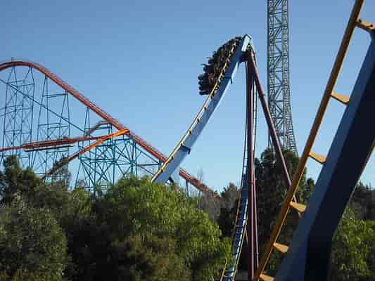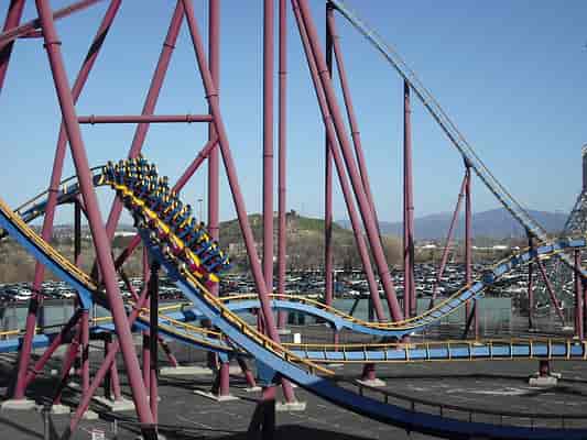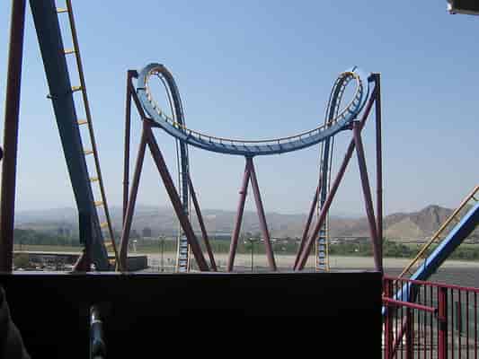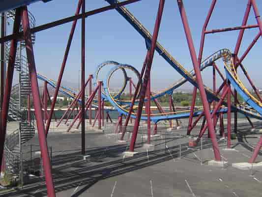 A bumpy ride, keep your head forward, or all the way back, otherwise, you'll come off with a headache. The ride offers up a speedy experience with two loops and the B&M 'interlocking' corkscrews. I wouldn't say this is a must-do, however, I'd recommend you check it out if you haven't ridden a B&M (Floorless) before.