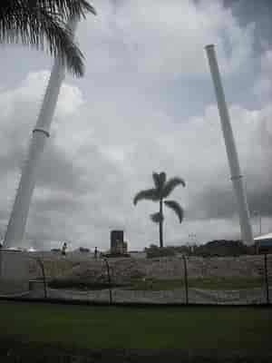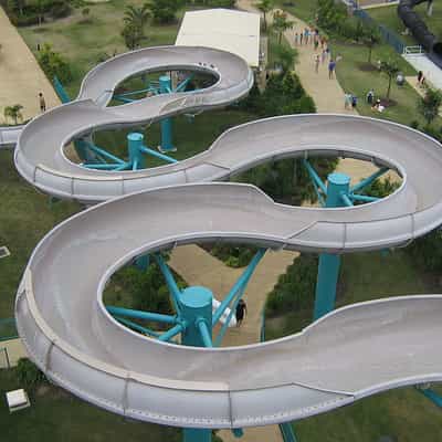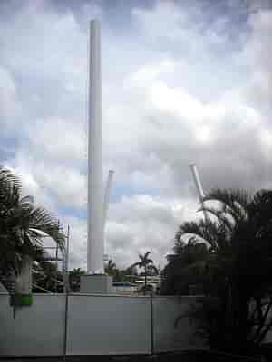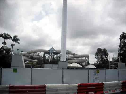 Riders are put in a harness suspended from a tall steel arch. A cable wound over a launch tower located behind winches riders to the highest point, before they are released and swing back and forth.