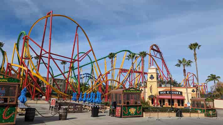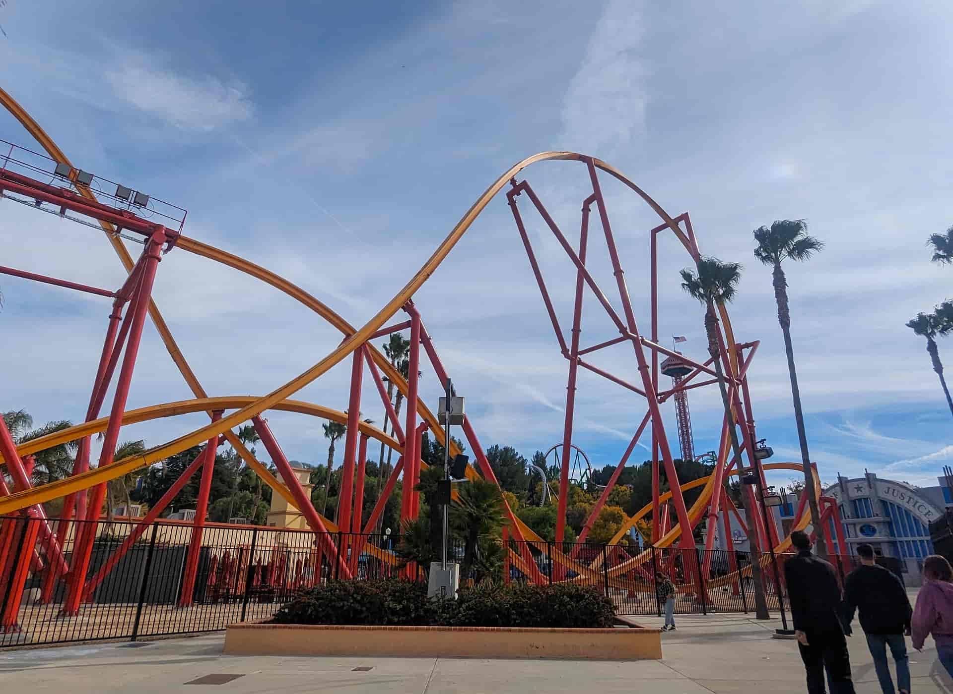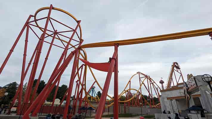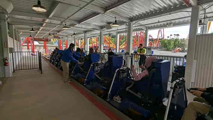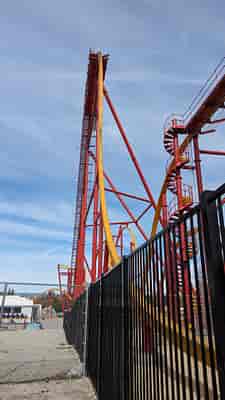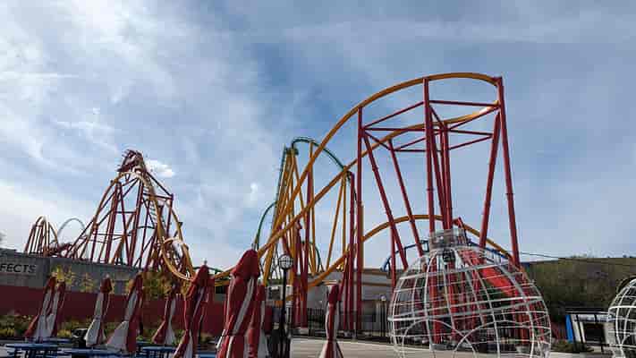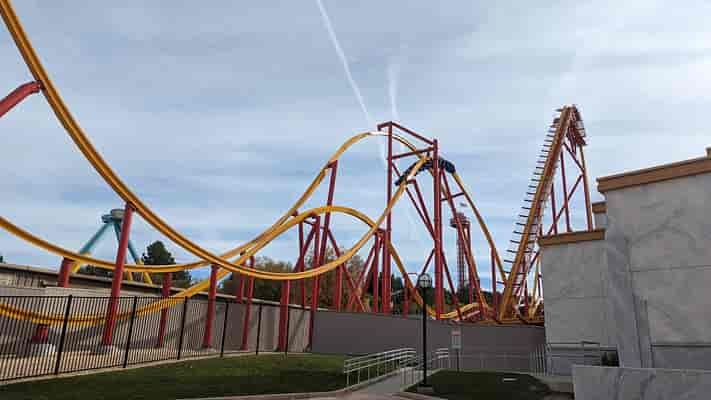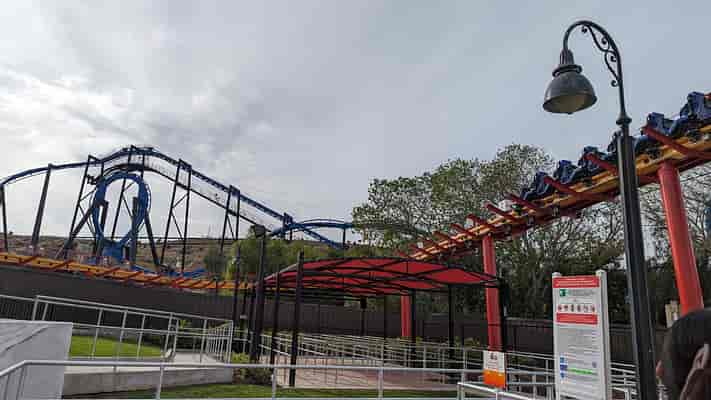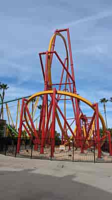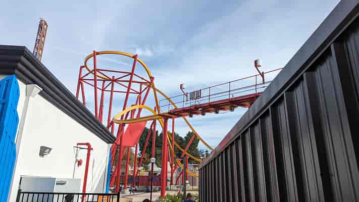 Single rail roller coaster with three inversions. Guests sit in individual cars that straddle the track.
