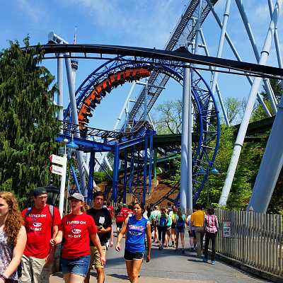 A fun game at Hersheypark is to see how many coasters you can squeeze into one shot. Here we can see superdooperLooper, Comet, and Skyrush.