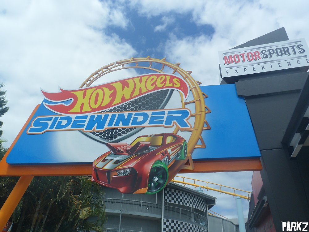 The entrance signage. Early announcements for the ride dubbed the attraction the "Hot Wheels Hot Lap Coaster".