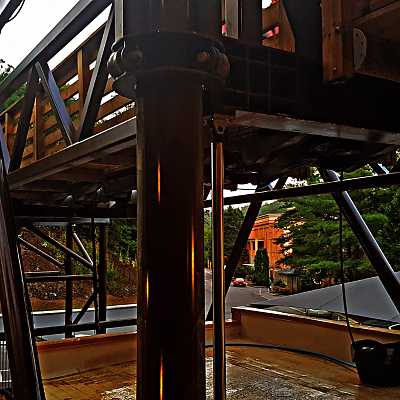 The final bit of track before the station is a vertically lifting transfer track to the maintenance bay below the station.