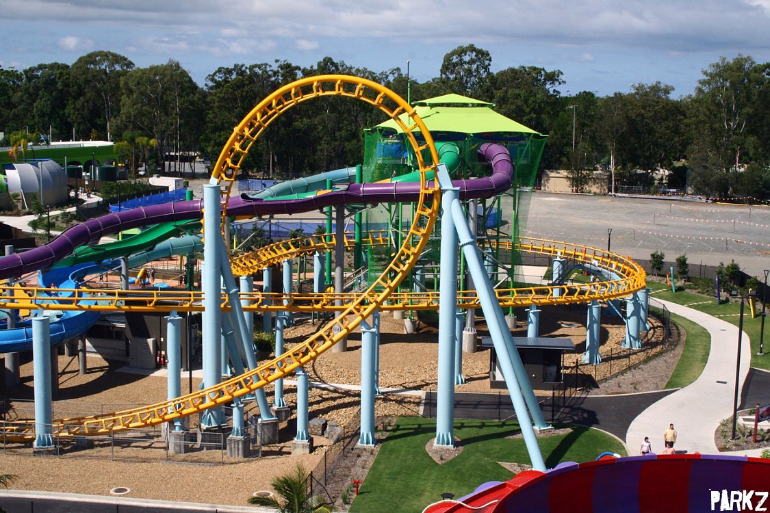 The slides makes great use of the land in and around the Cyclone roller coaster.