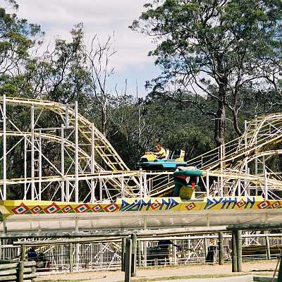 Diamond Python is the flagship roller coaster at Merimbula's Magic Mountain, a small amusement park in the seaside NSW town of Merimbula, near the NSW/Victoria border.