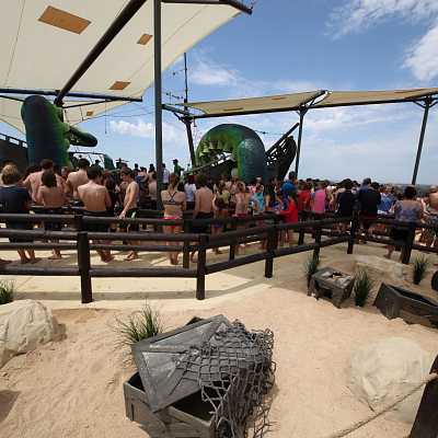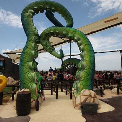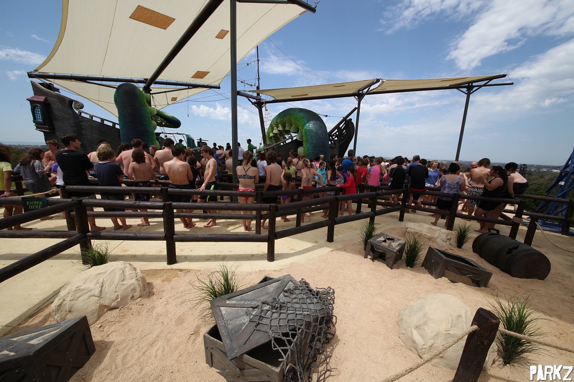 More pirate ship-themed shade sails were added after the opening of Kraken. Wait times, during busier periods, can be up to an hour.