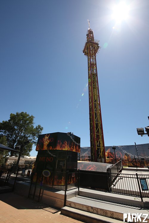 Like the other flat rides at Adventure World, Inferno has undergone a facelift, and was re-named from it's original title of Freefall.