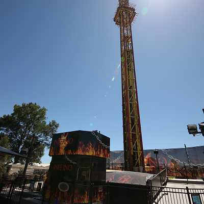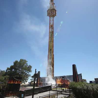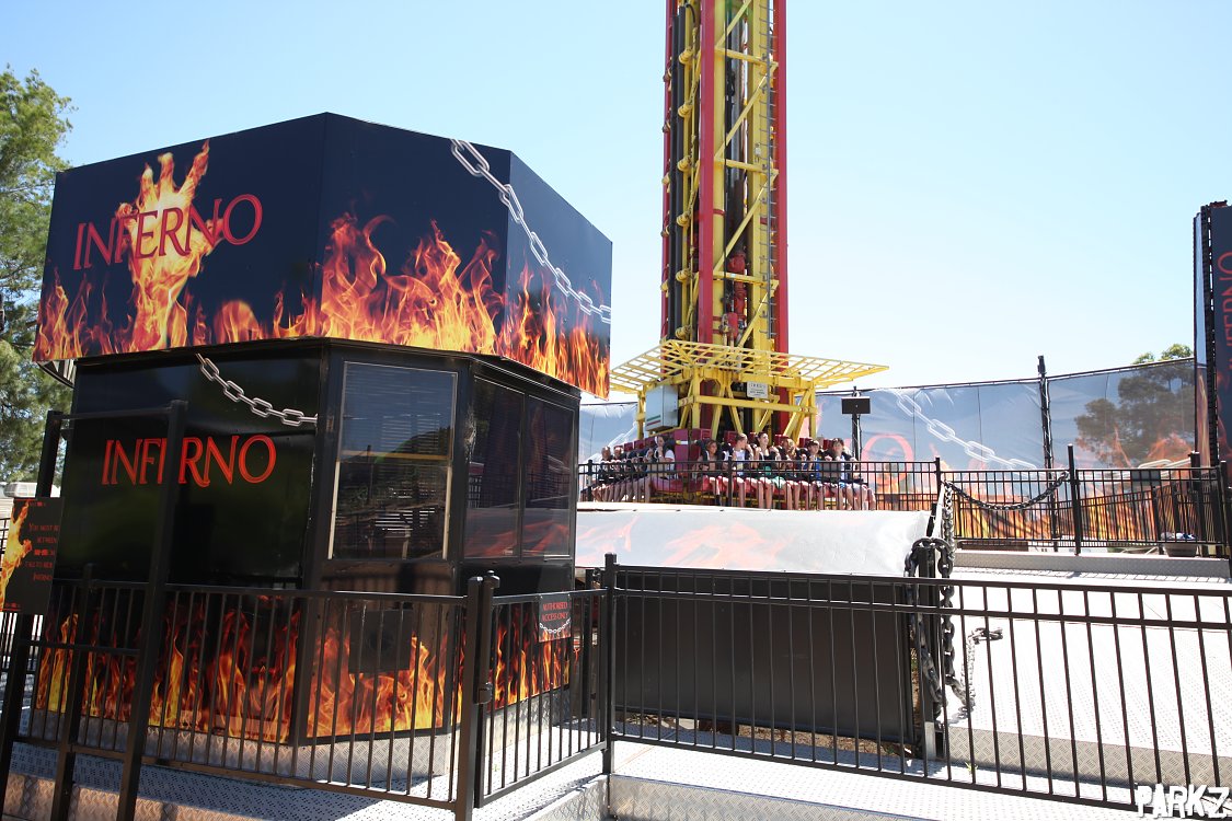 Like the other thrill rides it is clustered with, it has a demonic spooky theme.