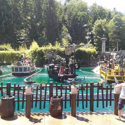 In a break away from the general Wild West theme of the park is this Splash Battle with elaborate pirate theming.
