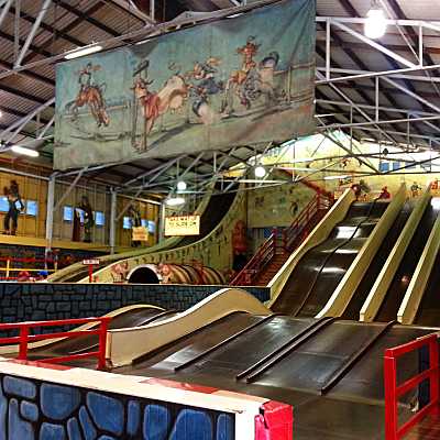 Some of the biggest thrills in the park come from some of these crazy slides, with near vertical drops and airtime humps. You can also see the spinning tunnel.