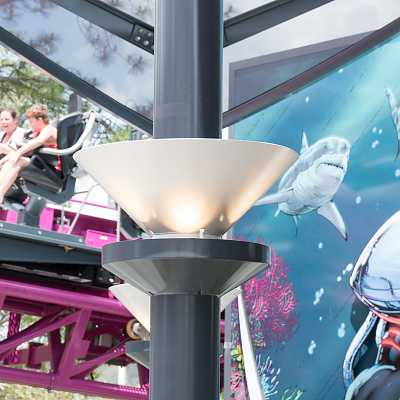 These simple lights are built into the support structure for the shelter.