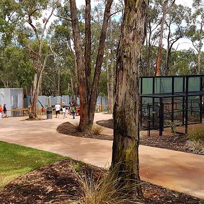 In one corner is an extensive aviary, and elevated boardwalks around koalas.