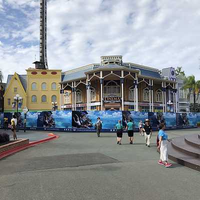 The cinema is now fenced off for its transformation into a Flying Theatre attraction.