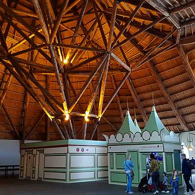 The impressive structure is all timber and houses the ticket boxes.