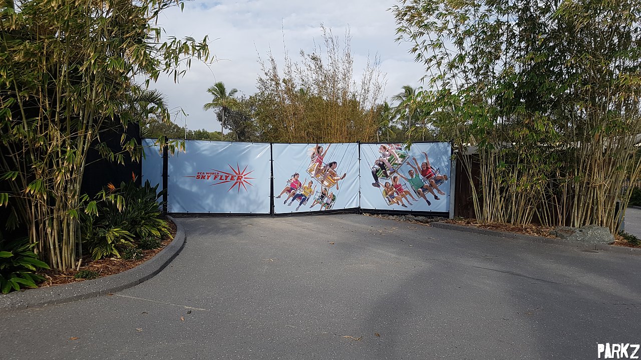 A bit of sky flyer branding on the path from Nickelodeon Land.
