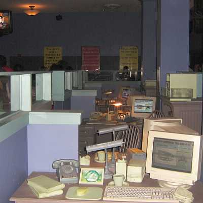 The theming in the queue is oddly painted in flat colours to reinforce the comic book feel.