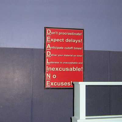 From the lobby the queue winds back and forth through the workstations of the newspaper.