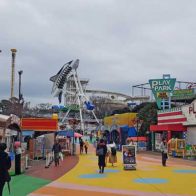 The parks midways may feel bland but the rides are colourful.