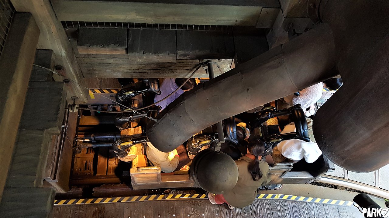 Looking down over the load platform. Those pipes are warm air blowers for the cast members who stand there all day.