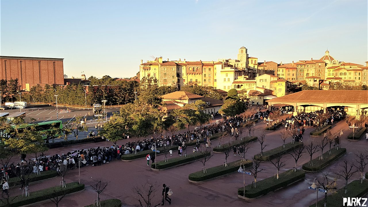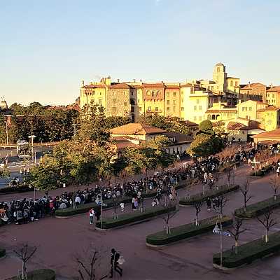Crowds waiting outside the ticket gates at 7:00 am in the morning.