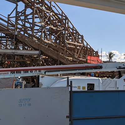 No works have commenced yet on the station building, in contrast to Steel Taipan, station up at Dreamworld, which already is well underway.
