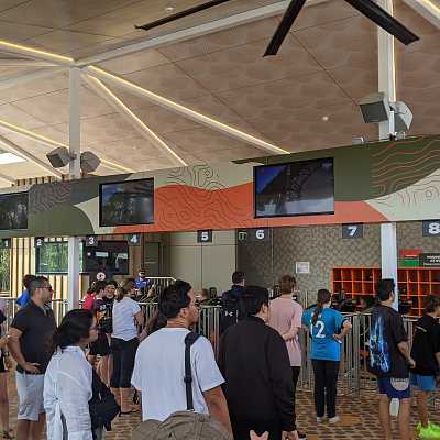 The trains feature a comfortable overhead lapbar and elevated seating, creating a real feeling of openness when riding.