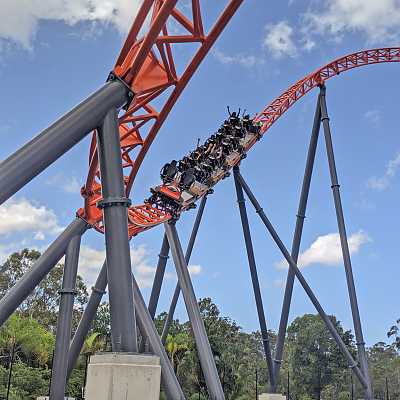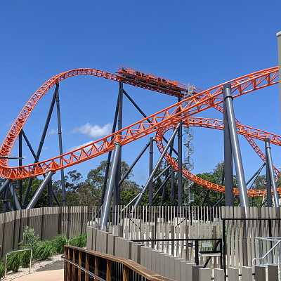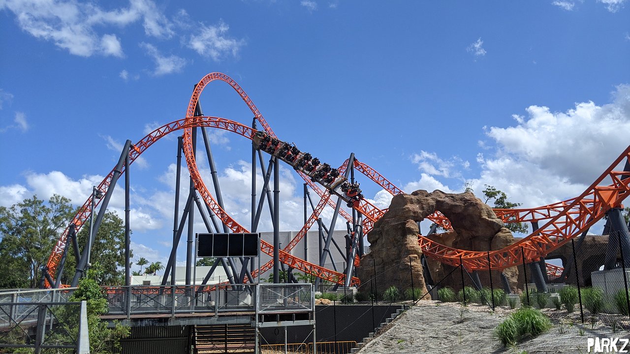 The first of a pair of corkscrews, arranged in a "twisted horseshoe roll" configuration.