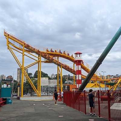 Rather than travelling around a full circuit, the train is reversed up a slope, then sent back down to travel through the course.