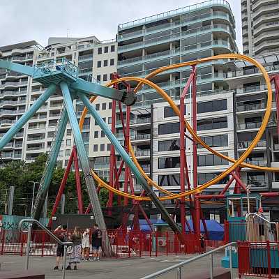 Unlike most rides of this type, it is capable of a full 360 degree revolution, inverting riders, though shortly after opening the park reverted to partial height swinging (Reportedly due to technical issues)