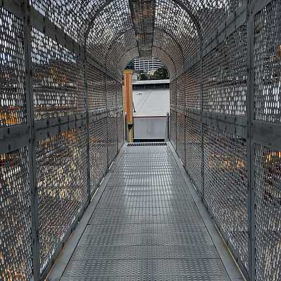 One last flight of stairs into the station, where the track passes very closely overhead.