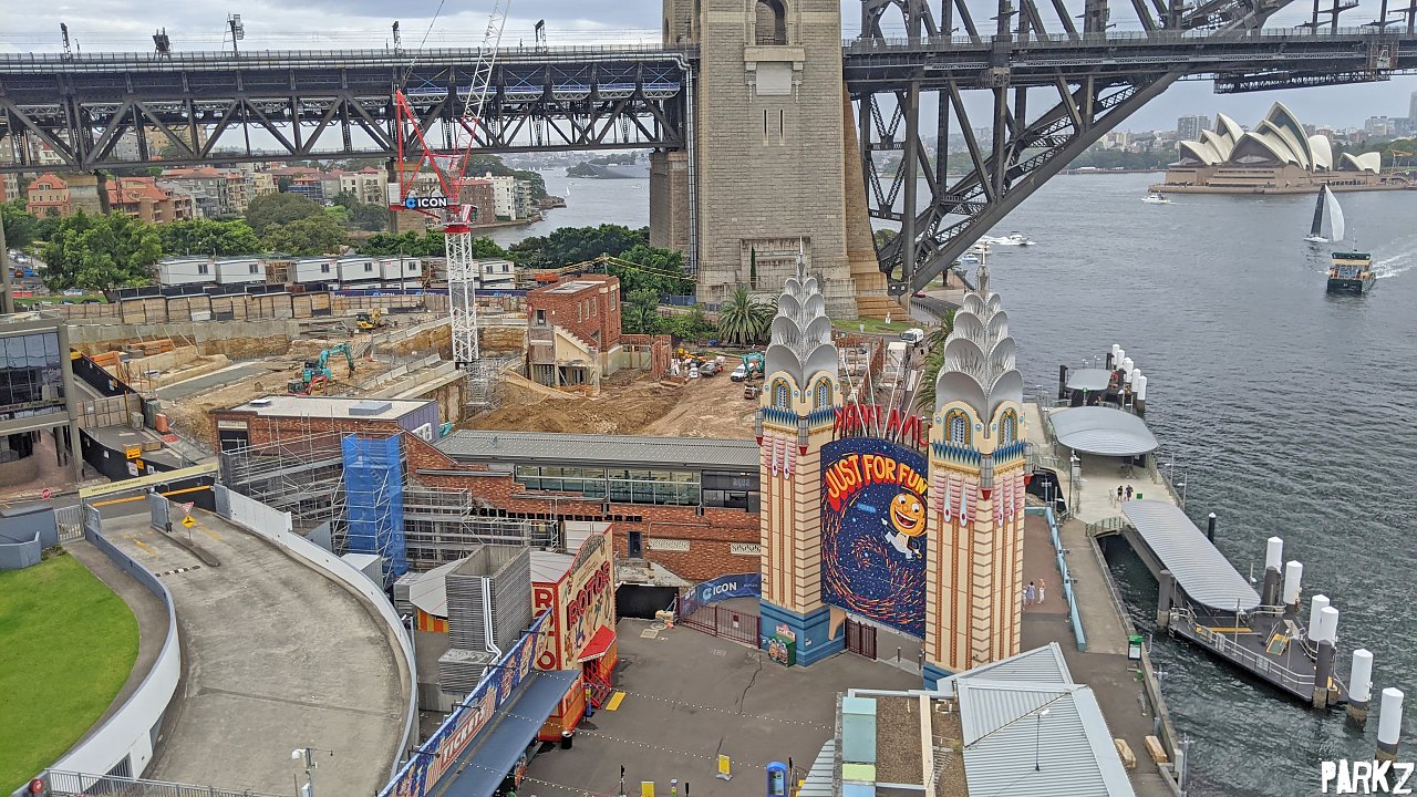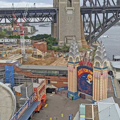 A rare view with Luna Parks neighbour, the North Sydney pool ripped up and undergoing renovations.