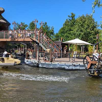 Each boat is on a swivelling boom, and steering your boat allows you to turn in and out.