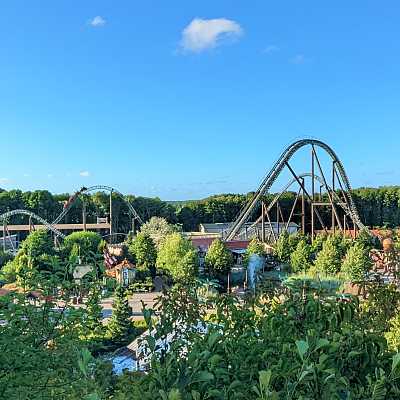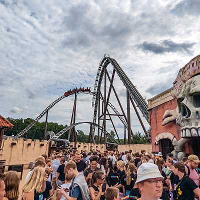 A test seat allows you to check the lap bar for fit before joining the queue.