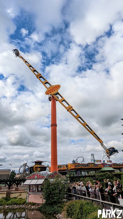 The ride generates intense forces, particularly if you happen to spin headfirst when swinging towards the ground.