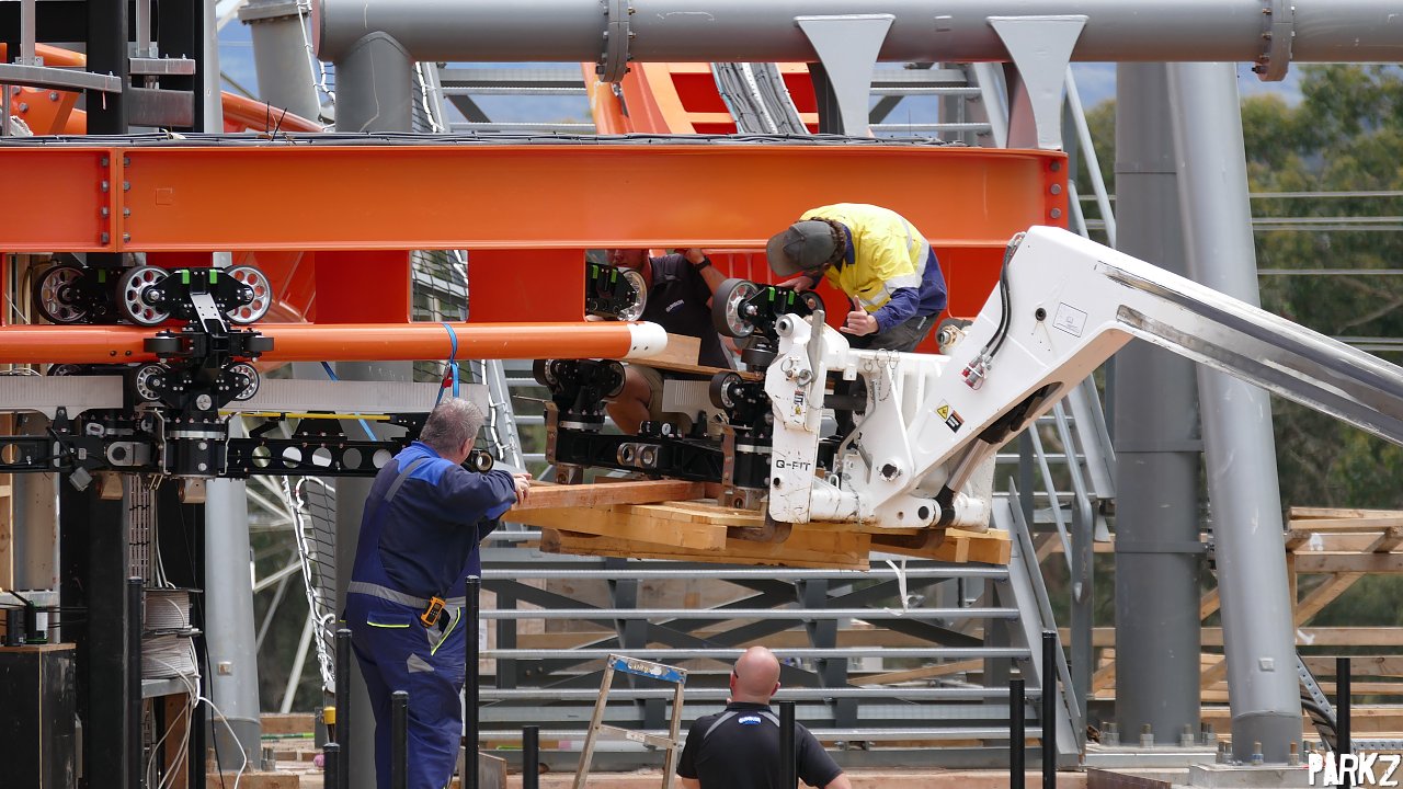 How to install a Vekoma SFC wheel bogie 101. Step (2): Lift bogie in-line with track via the removable track section.