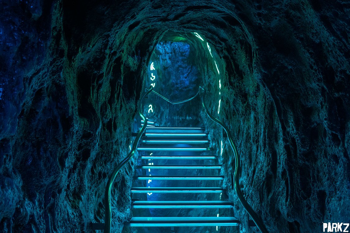After the main outdoor queue, rivers walk through a dark section full of AV effects.