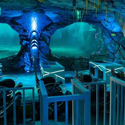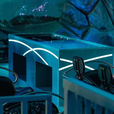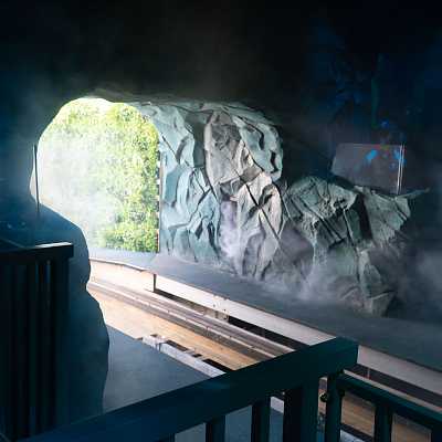 Loose item bins have become more and more complicated in recent years. For Leviathan they revert to this refreshingly simple concept: two sets of compartments that feature a sliding lid to cover one train's riders while the other unloads and loads.