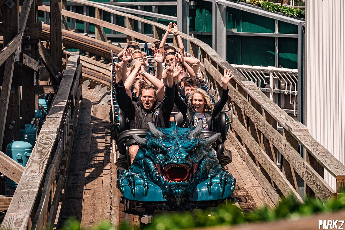 The first public riders of Leviathan hit the brake run.