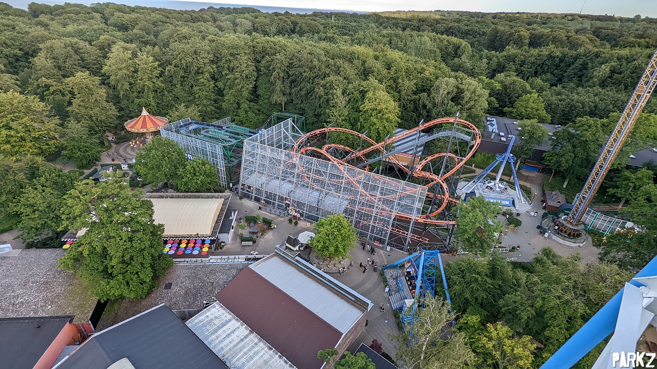 From left to right; Svinggyngerne, Tyfonen, Cobra, Himmelrum, Hjertekig, with Piratskibe in front.