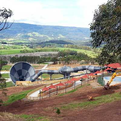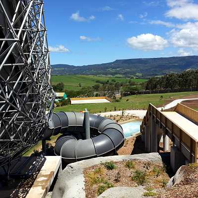 A year after the attraction opened, the park later added a giant funnel web statue overlooking the ride.