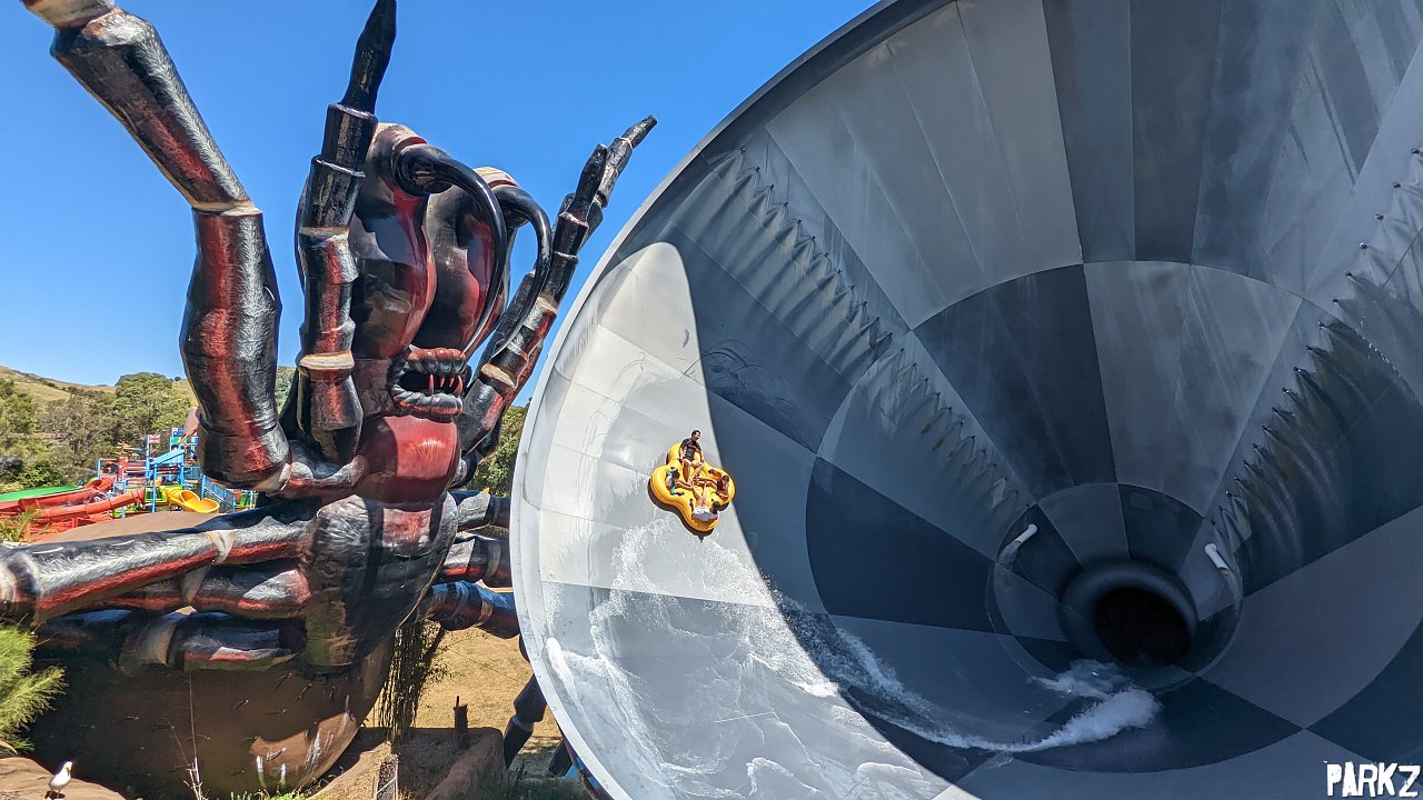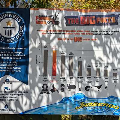 A year after the attraction opened, the park later added a giant funnel web statue overlooking the ride.
