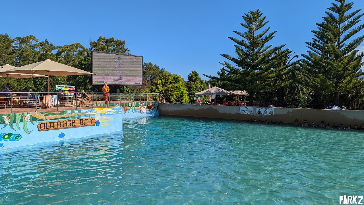 The wave pool features a big screen for "Dive in Movies", but given our visit was on Boxing Day it was being put to good use to broadcast the Boxing Day Test.