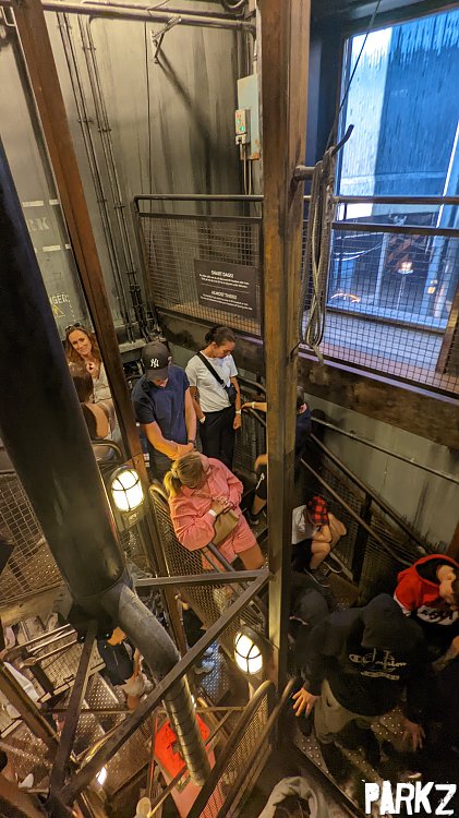 The queue heads down into the basement.
