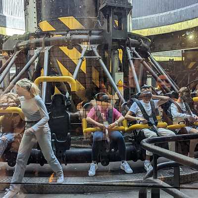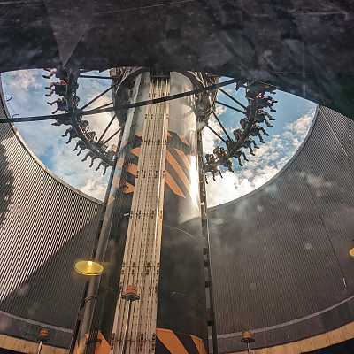The ride has a magnetic braking system, though large shock absorbers at the bottom bring it to a gentle final stop.